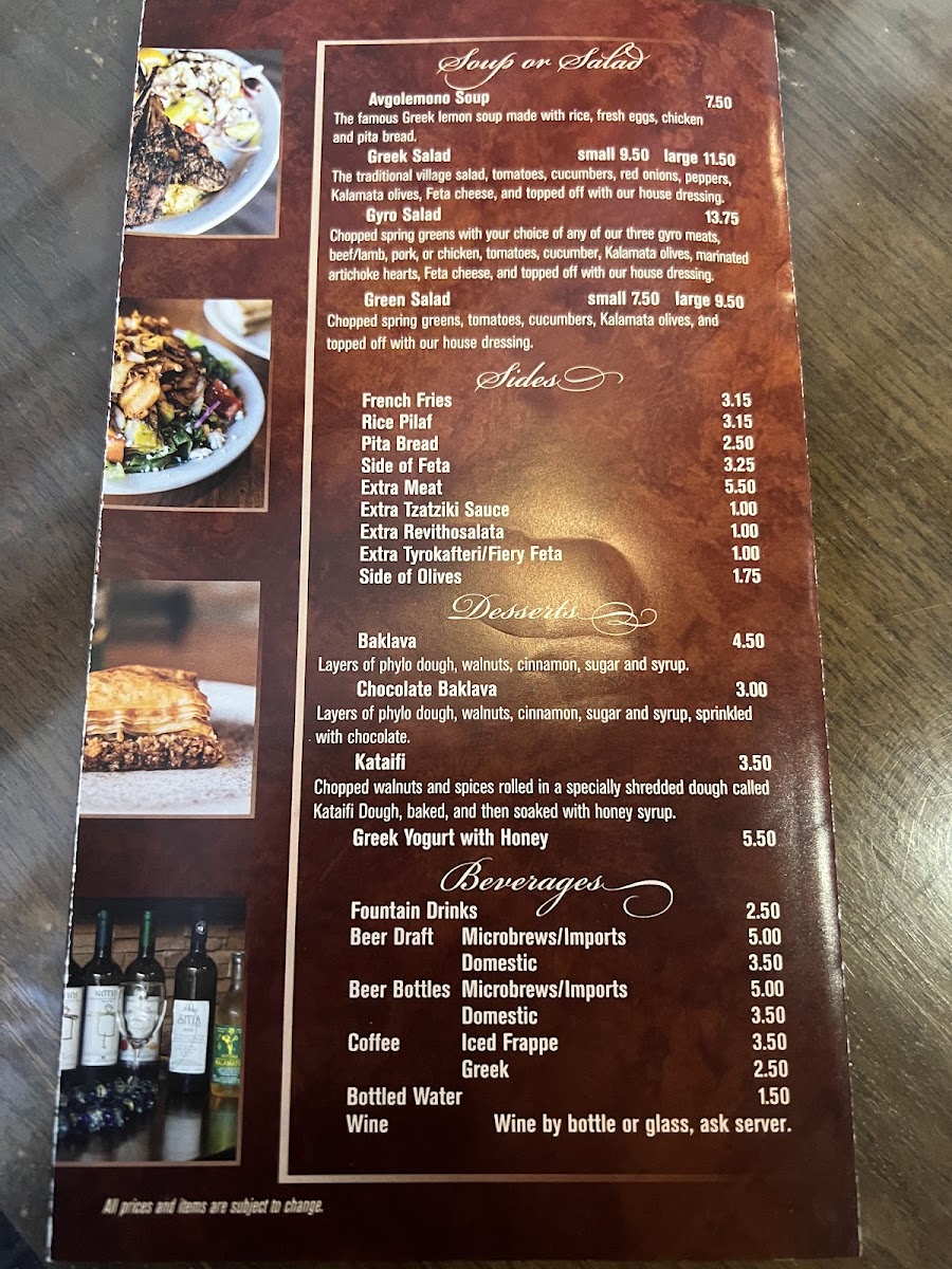 As you step inside, the aroma of grilled meats and freshly prepared dishes greets you, setting the tone for an enjoyable dining experience. The menu features fan-favorites that transport your taste buds straight to the Mediterranean. A must-try is the Pork Gyro, boasting thin slices of expertly seasoned pork piled high on a warm pita, complemented by juicy tomatoes, crispy fries, fresh parsley, and an option for creamy tzatziki sauce. Priced at just $14.00, it’s a hearty meal that doesn’t break the bank.